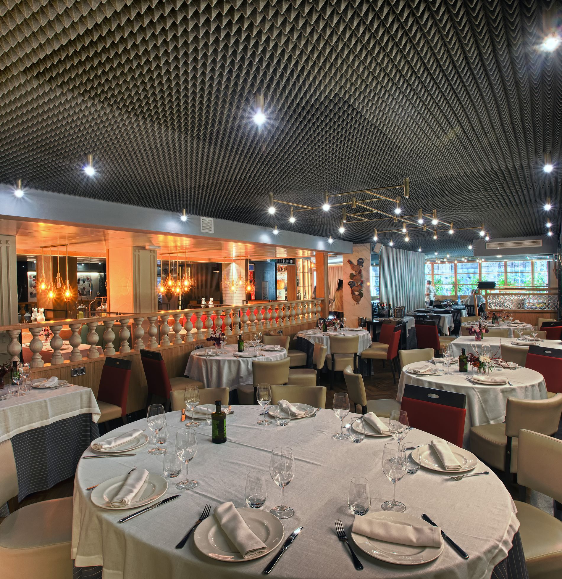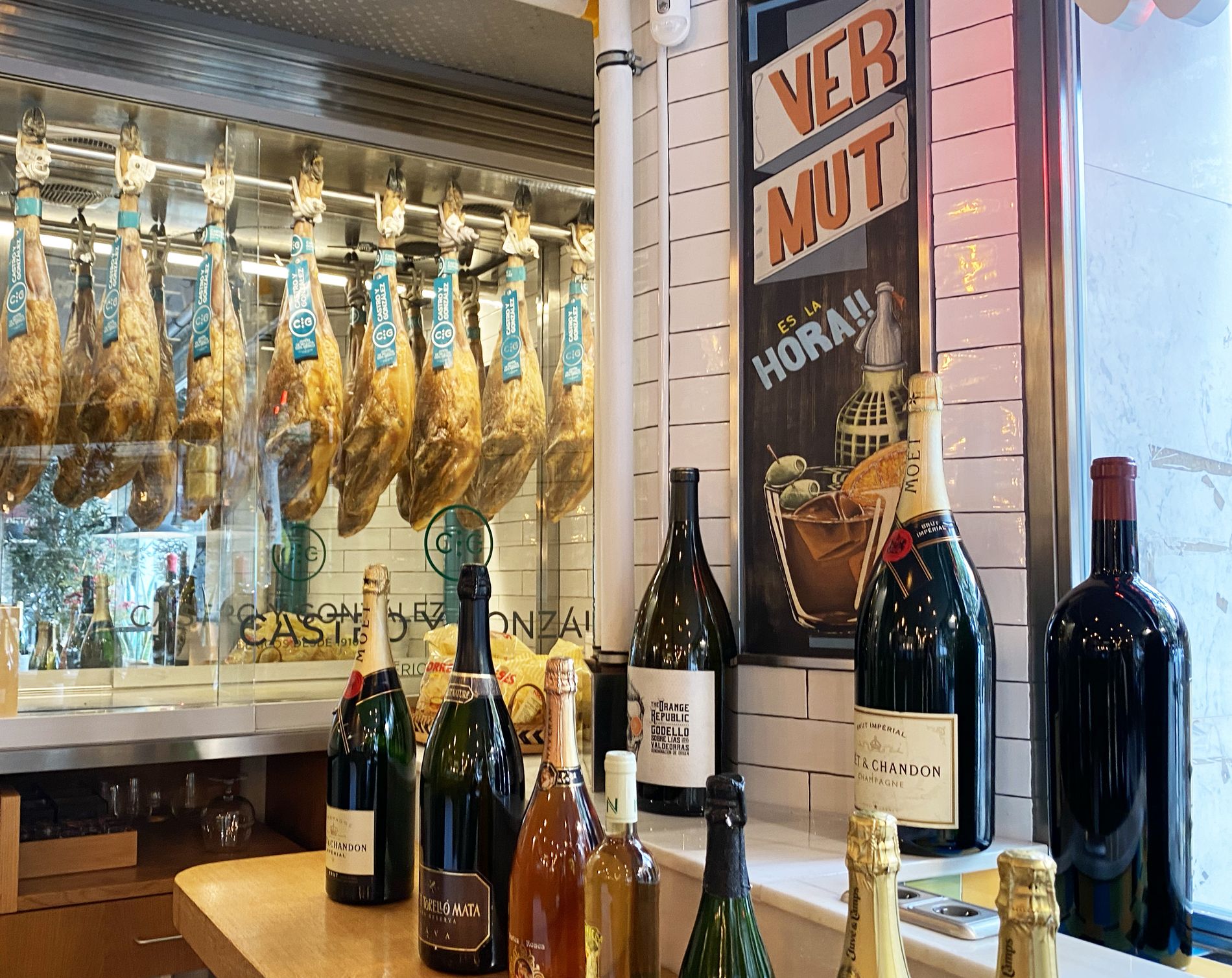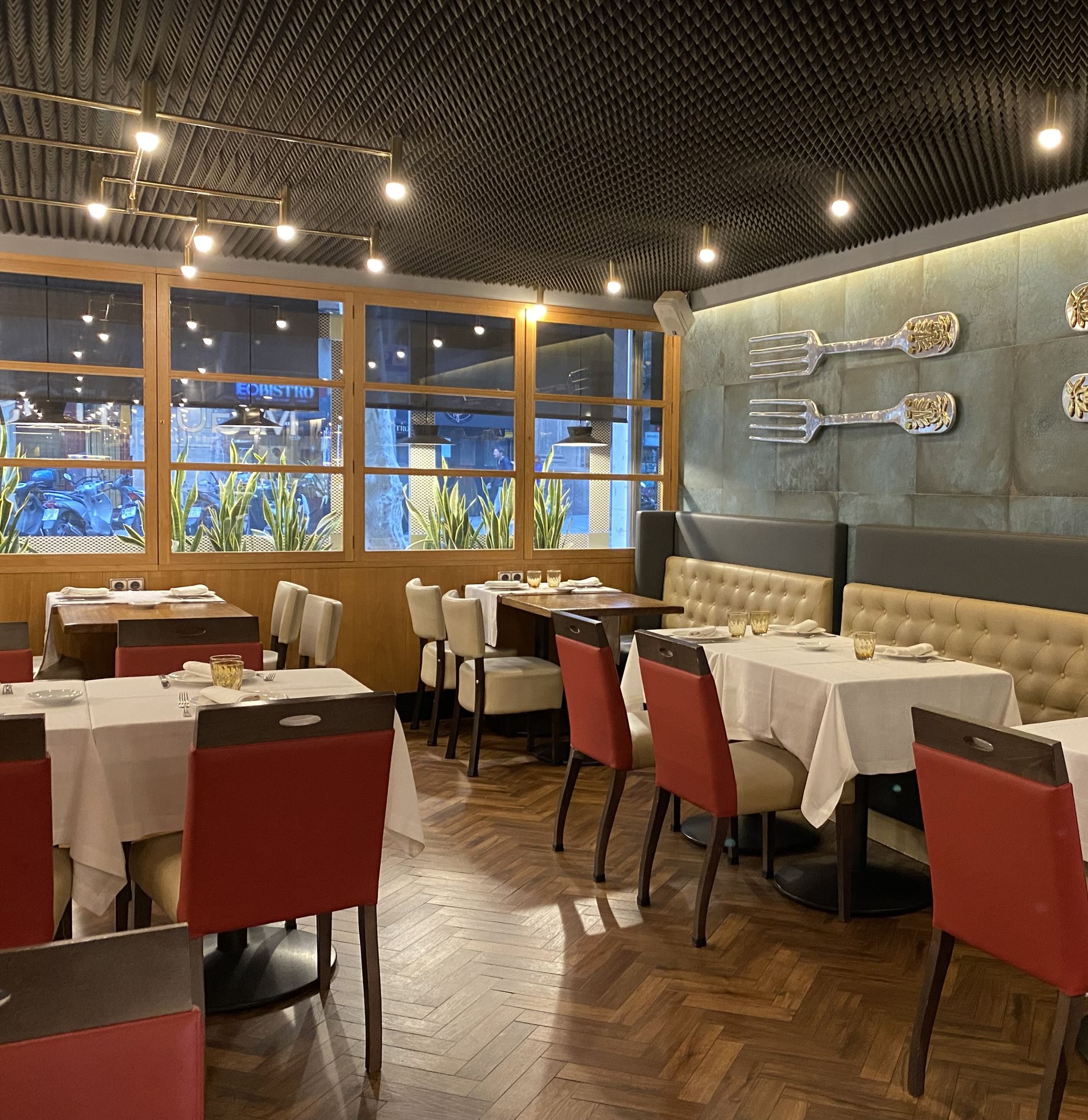 Una zona de barra pensada para quienes quieren comer bien sin perder tiempo, con montaditos, tapas, platillos tanto fríos como calientes y varios comedores con distintos estilos y una decoración con mucho encanto.